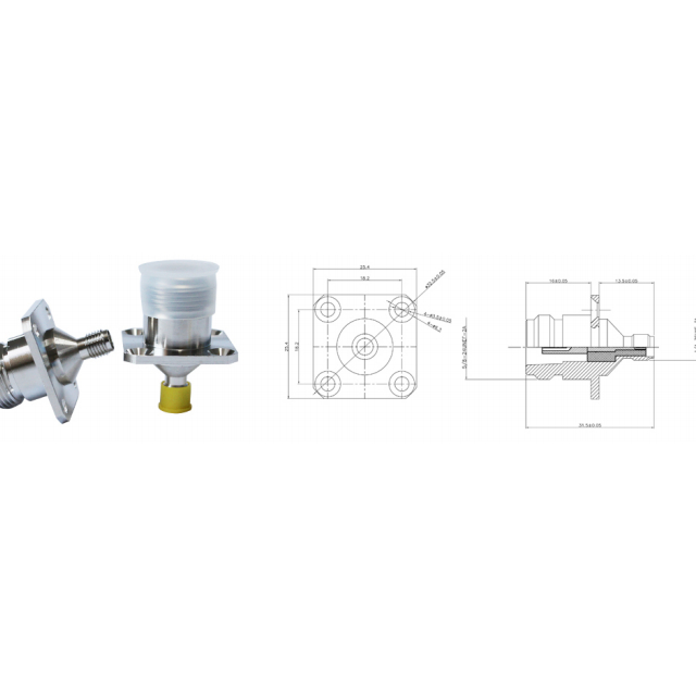Gamme de fréquences (GHz) 8 Impédance (ohm) 50 VSWR 1,10 Tension d'essai (max) 2 500 V PIM (3e ordre) ≤ -160 dBc à 2 x 20 W Cycles d'accouplement ≥ 500 Couple de couplage max. 1,7 Nm Couple de couplage recommandé 0,7-1,1 Nm Plage de température -55 ℃ - + 155 ℃ Contact extérieur Placage CuSnZn en laiton Contact central Placage Ag en laiton Groupe de câbles N/A Placage CuSnZn Longueur (mm) Ф18,2*31,5