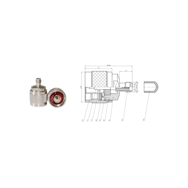 Gamme de fréquences (GHz) 4 Impédance (ohm) 50 VSWR 1,10 Tension d'essai (max) 2 500 V PIM (3e ordre) ≤ -160 dBc à 2 x 20 W Cycles d'accouplement ≥ 500 Couple de couplage max. 1,7 Nm Couple de couplage recommandé 0,7-1,1 Nm Plage de température -55 ℃ - + 155 ℃ Contact extérieur Placage CuSnZn en laiton Contact central Placage Ag en laiton Groupe de câbles N/A Placage CuSnZn Longueur (mm) Ф19*30