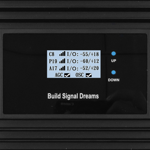 Fréquence : 900/1800/2100 B8+B3+B1, 800/1800/2100 B20+B3+B1, 800/900/1800 B20+B8+B3, 800/900/2100 B20+B8+B1 ; Gain : 65-70 dBi ; Alimentation : 20 ± 2 dBm ; Dimension : 2050 × 1350 × 400 mm ; Poids : 1 kg ; Zone de couverture : > 300 m²