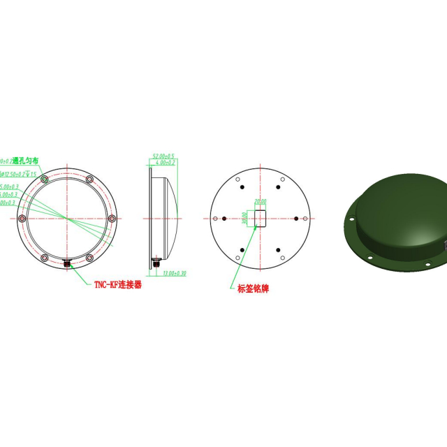 Gamme de fréquences (MHz) BDS:B1,B2,B3 GPS: L1, L2,L5 GNONASS:G1,G2 Galileo: E1, E5a,E5b Gain de crête ≥5,5 dBi Polarisation RHCP VSWR ≤2,0 Rapport axial ≤3dB Impédance 50Ω Gain LNA 40±2dB Angle de couverture horizontale 360° Planéité de la bande ±2dB Facteur de bruit ≤2,0 Centre de phase ±2mm Tension de fonctionnement 3,0~12V DC Courant de fonctionnement ≤50mA Connecteur MMCX Humidité 95% Sans condensation Température de stockage -45℃ à +85℃ Température de fonctionnement -40℃ à +80℃ Poids ≤130g