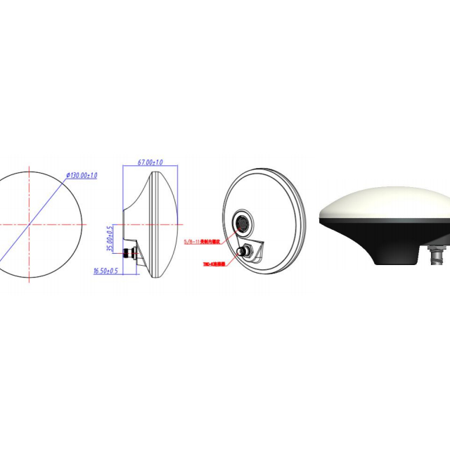Gamme de fréquences (MHz) BDS:B1,B2,B3 GPS: L1, L2,L5 GNONASS:G1,G2 Galileo: E1, E5a,E5b Gain de crête ≥5,5 dBi Polarisation RHCP VSWR ≤2,0 Rapport axial ≤3dB Impédance 50Ω Gain LNA 40±2dB Angle de couverture horizontale 360° Planéité de la bande ±2dB Facteur de bruit ≤2,0 Centre de phase ±2mm Tension de fonctionnement 3,0~12V DC Courant de fonctionnement ≤50mA Connecteur MMCX Humidité 95% Sans condensation Température de stockage -45℃ à +85℃ Température de fonctionnement -40℃ à +80℃ Poids ≤130g
