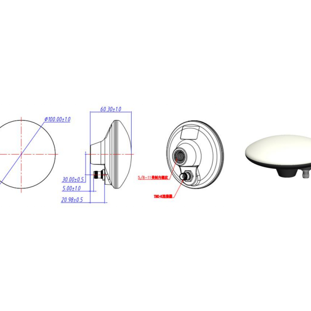 Gamme de fréquences (MHz) BDS:B1,B2,B3 GPS: L1, L2,L5 GNONASS:G1,G2 Galileo: E1, E5a,E5b Gain de crête ≥5,5 dBi Polarisation RHCP VSWR ≤2,0 Rapport axial ≤3dB Impédance 50Ω Gain LNA 40±2dB Angle de couverture horizontale 360° Planéité de la bande ±2dB Facteur de bruit ≤2,0 Centre de phase ±2mm Tension de fonctionnement 3,0~12V DC Courant de fonctionnement ≤50mA Connecteur MMCX Humidité 95% Sans condensation Température de stockage -45℃ à +85℃ Température de fonctionnement -40℃ à +80℃ Poids ≤130g