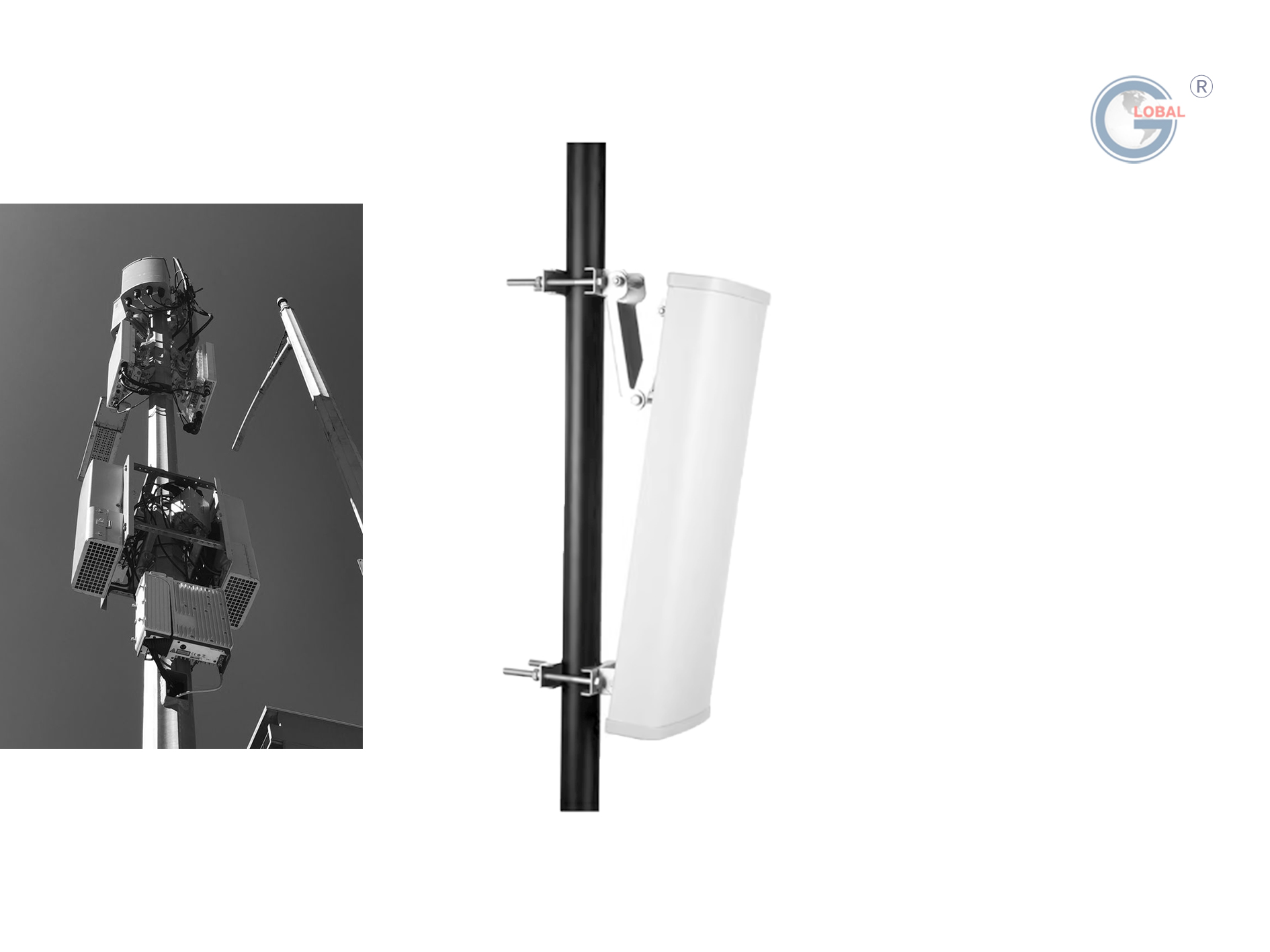 ● Installation flexible : connecteurs femelles 2-7/16DIN montés en bas, inclinaison mécanique réglable (0 à 12°) et compatibilité avec les poteaux de montage de 35 à 75 mm.